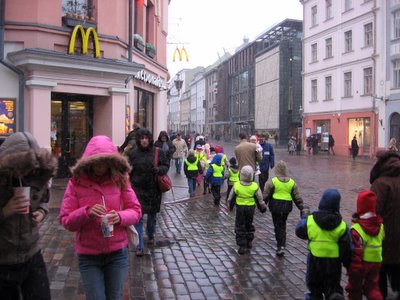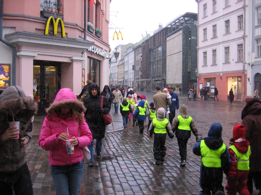 A group of reflective children Sarah and I followed from the bus stop to the Town Hall Square: nexus of Old Tallinn.