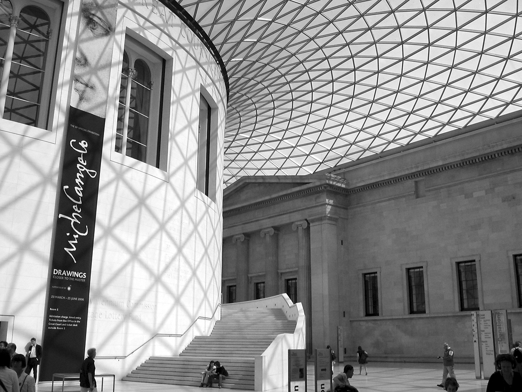That photo is from the atrium of the British Museum. If there’s one thing the place is not about, it’s modern technology.