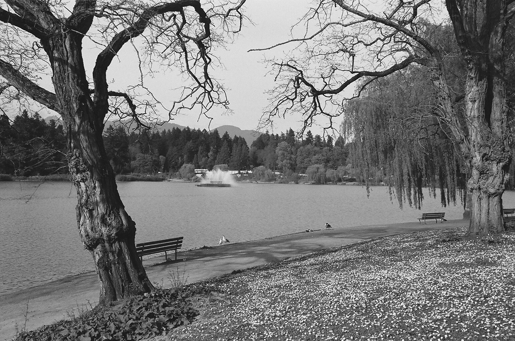 Taken during a walk with Astrid in late April 2005, this photo shows Lost Lagoon in Vancouver’s Stanley Park. Nearby, to the southeast, is Vancouver’s central urban district. Equally close, to the north and through the park, is the southern end of the Lions Gate Bridge to North Vancouver.