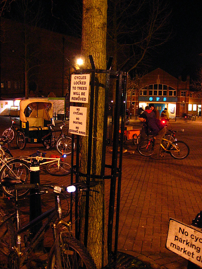 On the way back from my meeting with Dr. Hurrell, I found myself in the middle of a Critical Mass bike ride: a social gathering where a group of cyclists assemble and ride together through an urban area. A recent dinosaur comic discussed it. There is much about the movement to recommend it: it fosters a sense of community and it raises the visibility of a healthy and sustainable form of transport. It also allowed me the opportunity to try bicycle polo, a somewhat precarious game that was played in Gloucester Green, following the conclusion of the ride.
