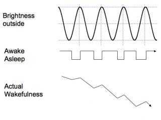 1. The middle line is far too sharp-edged. Unpleasant as it can be, near-sleep must be at least somewhat restful.