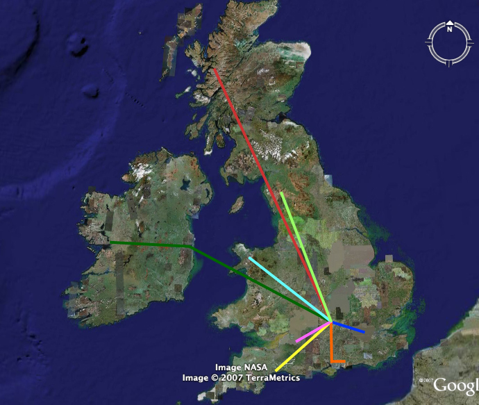 Here is a simple map of my trips in the British Isles so far. Blue is for London, visited many times (1, 2, 3, 4, 5) . Orange is the the trip to Chichester for Sarah Webster’s wedding, with the eastward jot to Arundel shown also. Yellow is the reading retreat to Devon, while pink is for my day in Bath. Green is the excellent Ireland trip: to Dublin and then across to Galway. Light blue is the Walking Club trip to Snowdonia. Red is their trip to the Scottish Highlands, and light green is this weekend’s trip to the Lake District.