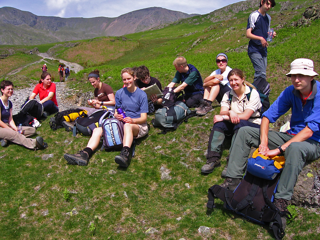 Thirteen Oxonians on a mountainside.