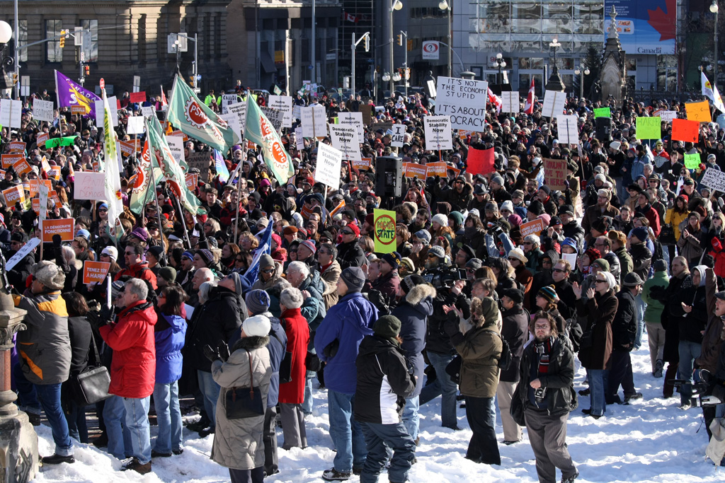 Ottawa’s prorogue protest, timed to coincide with several dozen across the country today, wasn’t exactly slick. It was long. The student cheer leaders were endearingly amateur. A speaker or two wandered lengthily off-track. And there looked to be a lot of ad-hoc cooks trying to salt their own spice into the bouillabaisse.