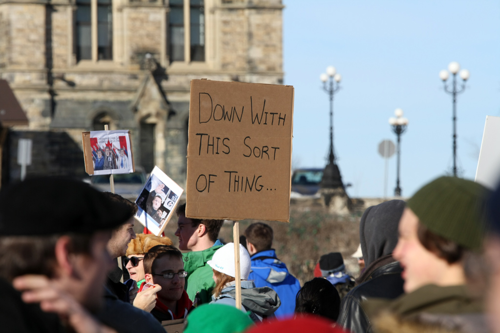 I thought the same but did find it more of an anti-Harper protest than an anti-proroguing protest. Right down to the NDP coloured manufactured signs, though obviously many people made and brought their own.