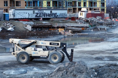 People are already living in the first tower. Probably, those with apartments facing towards downtown have made the safer choice. While there is a creek and a park off in that direction, the view the other way remains unknown until the plans for the whole area are sorted out.