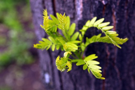 1. Hard to know for sure from the photo, but it may just be a shoot growing off the main trunk of the tree. Is the tree Gleditsia triacanthos?