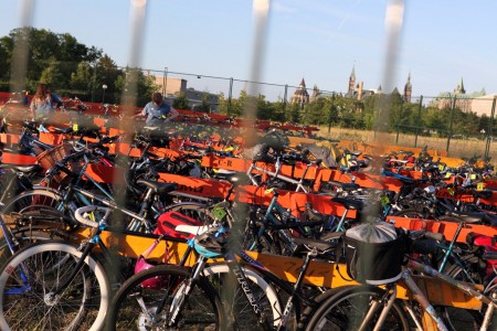 Cool picture. increasingly at public events I am seeing bicycle corrals. The last three days the best way to go to the Summer Festival commemorating the 125 th anniversary fo Vancouver was to bicycle. There were two bicycle corrals.