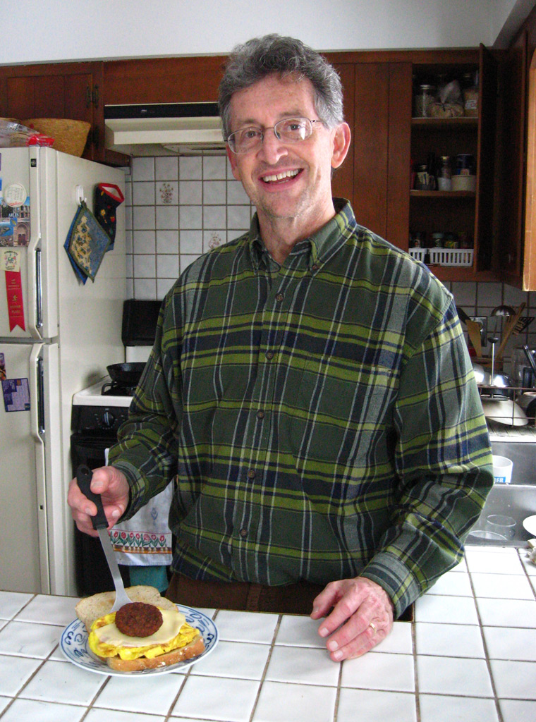 Robert Pini with egg sandwich
