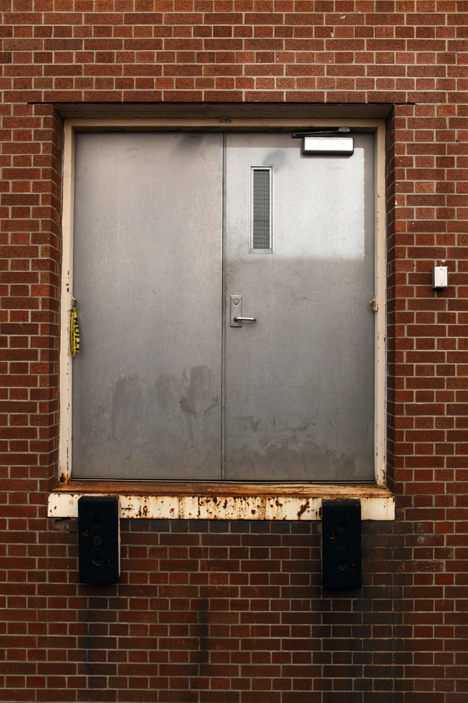 Metal door in brick wall