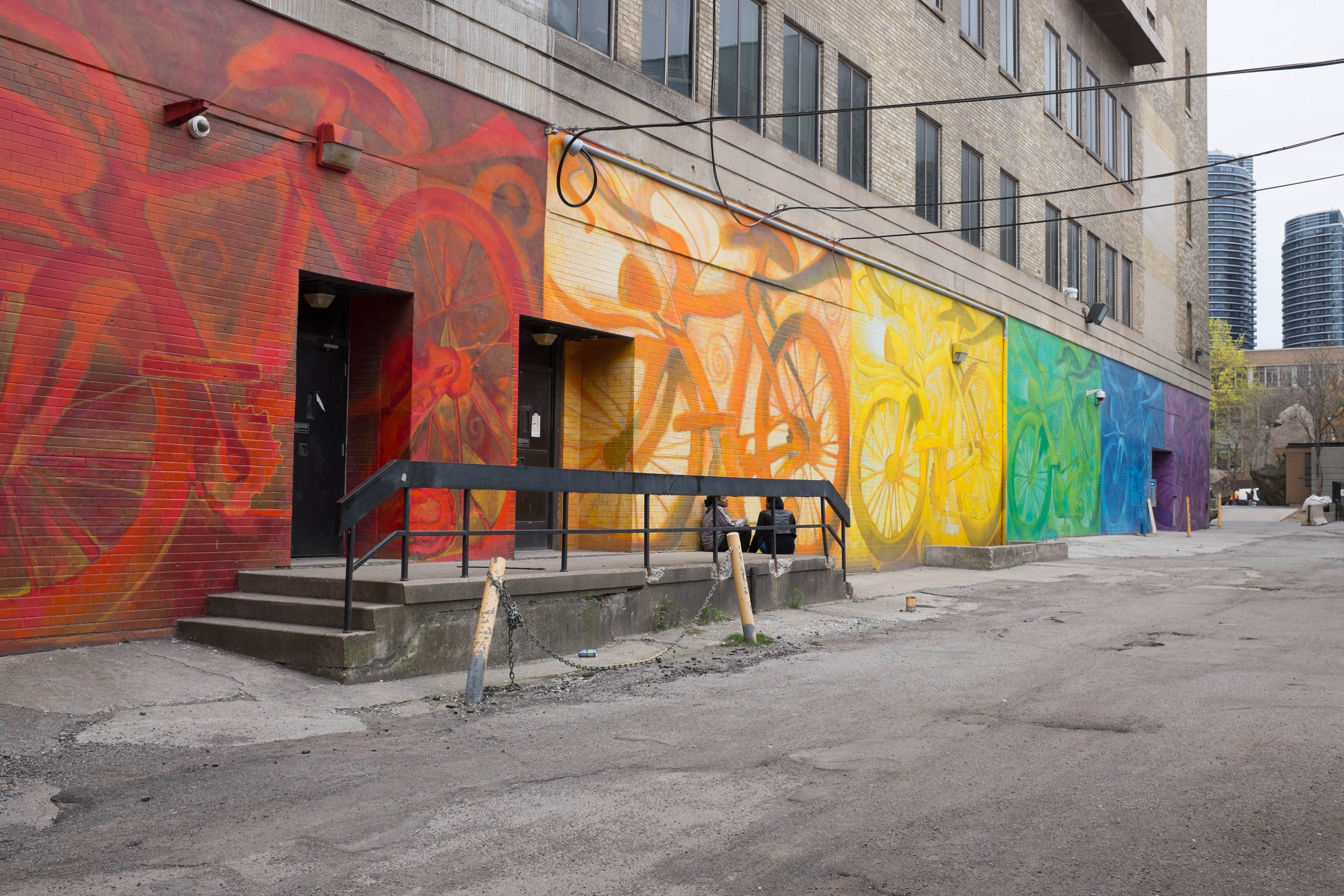 Rainbow bicycle mural