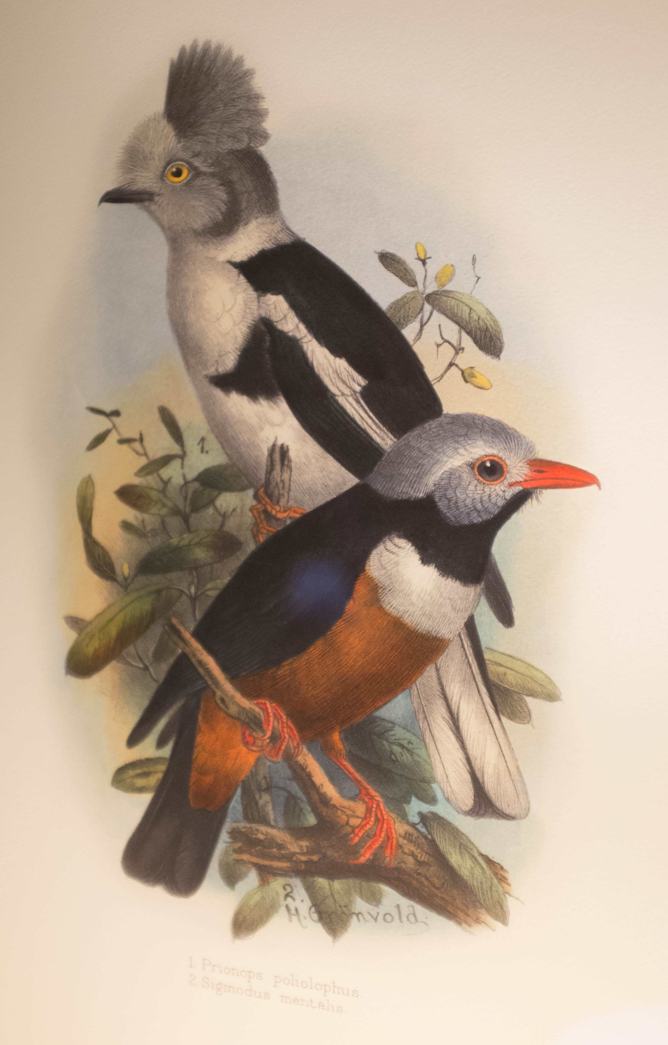 Grey fringe, orange feet