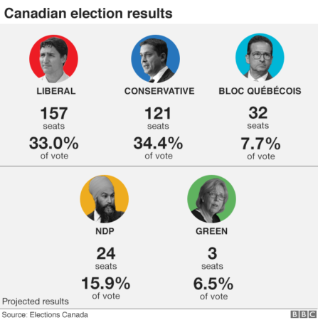 Prime Minister Justin Trudeau has retained power in Canada’s election but lost both his majority and – by a slight margin – the popular vote. Here is a breakdown of the good news for his Liberal party – and the bad.