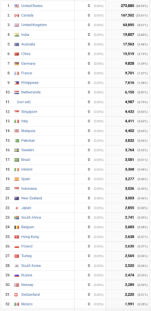 It’s neat to see how there have been at least some visits from nearly every country in the world: