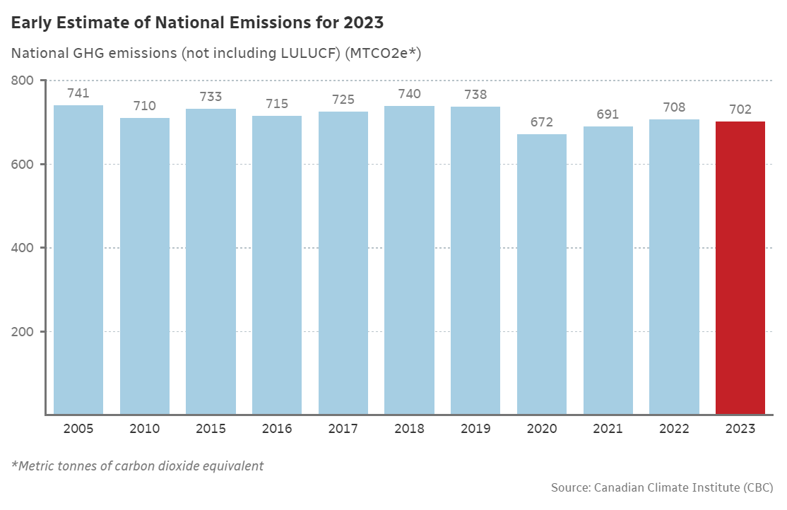 Canada’s emissions dropped slightly last year, with climate wins offset by oil and gas