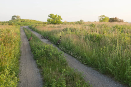 Adult geese and adolescent goslings