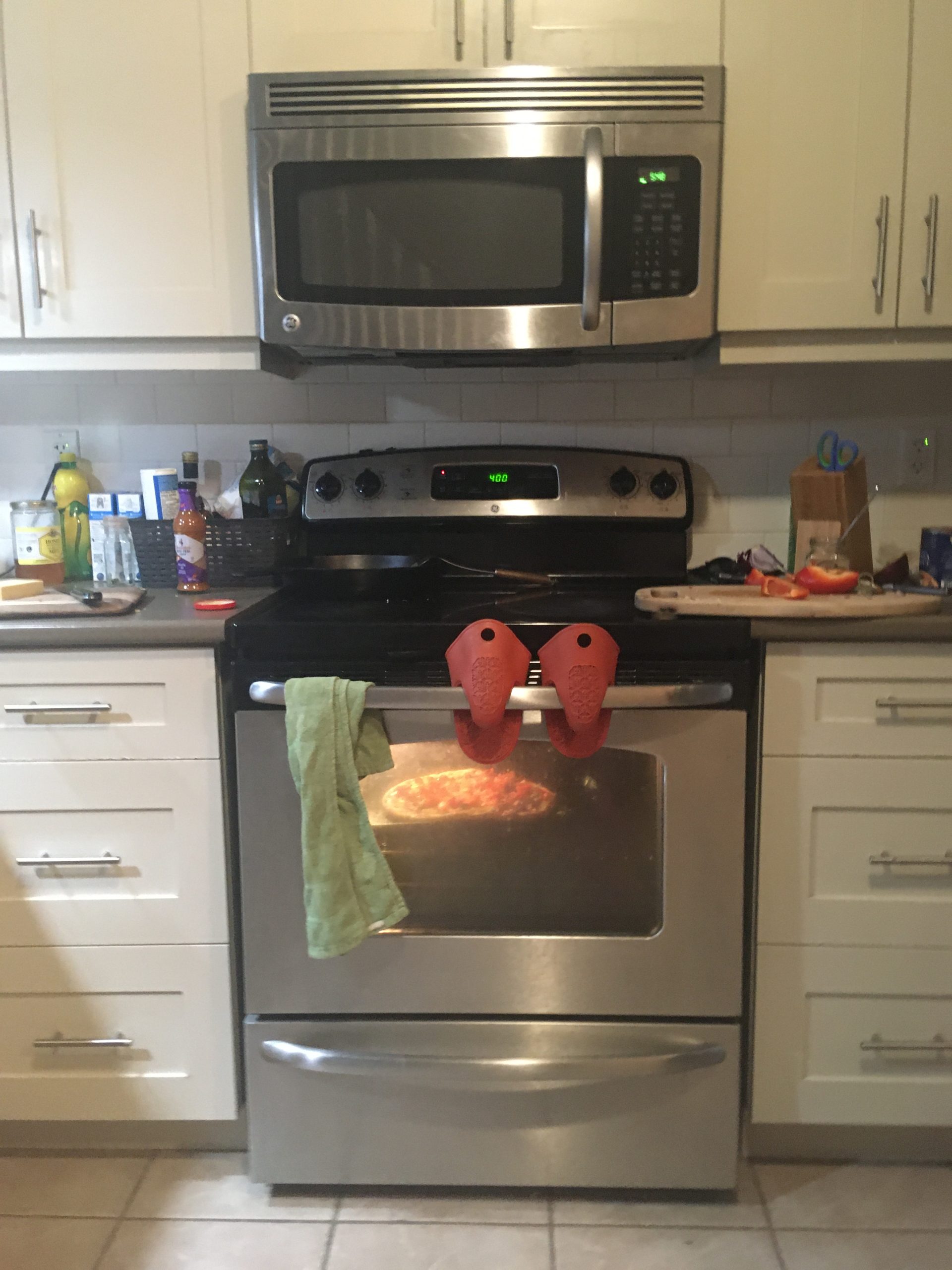 I don’t know why anyone would build a new kitchen with no hood over the stove or proper ventilation, but it means that even with a clean oven all the smoke alarms go off whenever you heat it above 400 ˚ to make pizza.